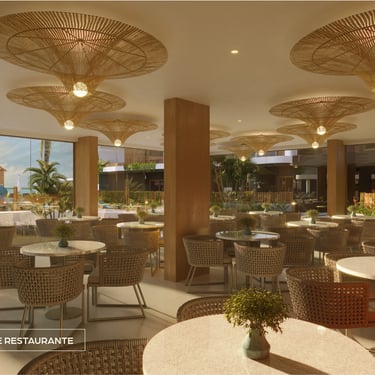 Design contemporâneo em perfeita harmonia com a natureza. A arquitetura do Gran Resort Maragogi traduz leveza, elegância e conforto em cada detalhe, com fachadas fluidas e materiais nobres como madeira, pedra e tons naturais, criando uma estética refinada, atemporal e acolhedora que reflete o luxo de um resort à beira-mar.