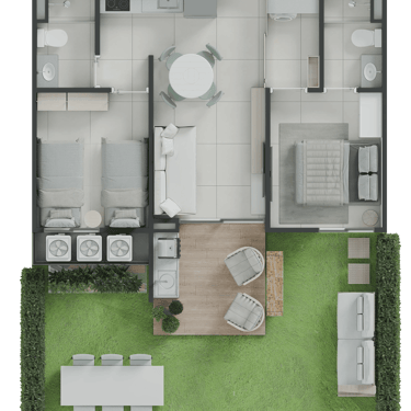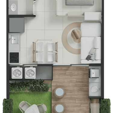 Térreo Garden: Studio e 2 quartos de 43,22m² e 72m²
