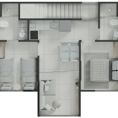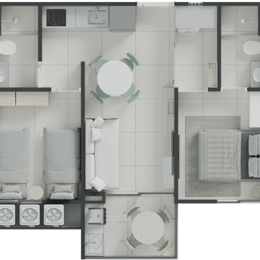 Studios, 2 e 3 quartos